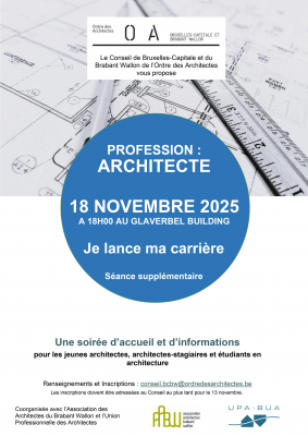 Vu le succès rencontré par la soirée d’accueil et d’information destinée aux jeunes architectes, architectes-stagiaires et étudiants en master d’architecture, l’AABW, le Conseil du BCBW de l’Ordre des Architectes et l’UPA-BUA ont décidé d’organiser une soirée supplémentaire.
